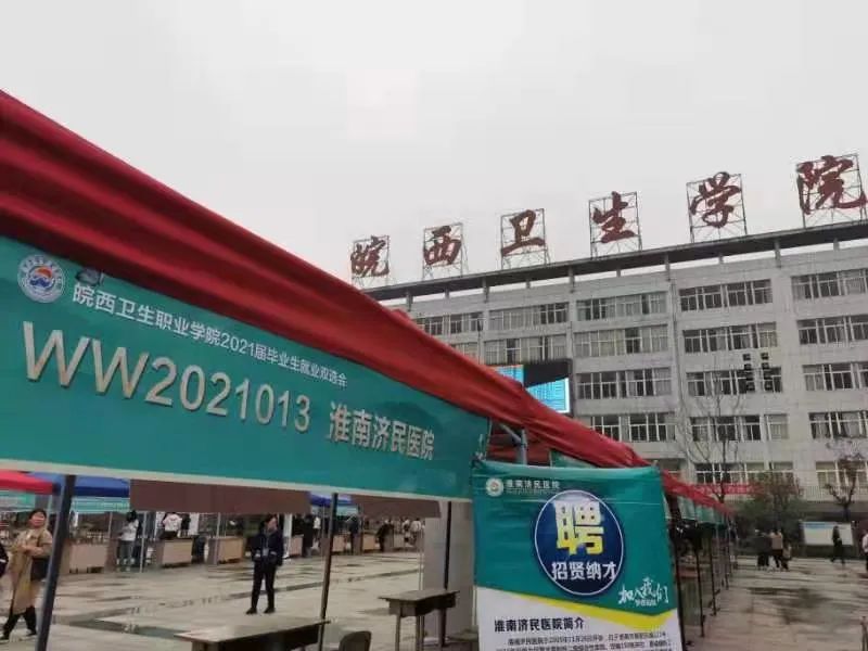 3月20日 皖西卫生学院在学校安排的展位挂上了淮南济民医院醒目的标语,以及摆放好我们提前准备的宣传物料。