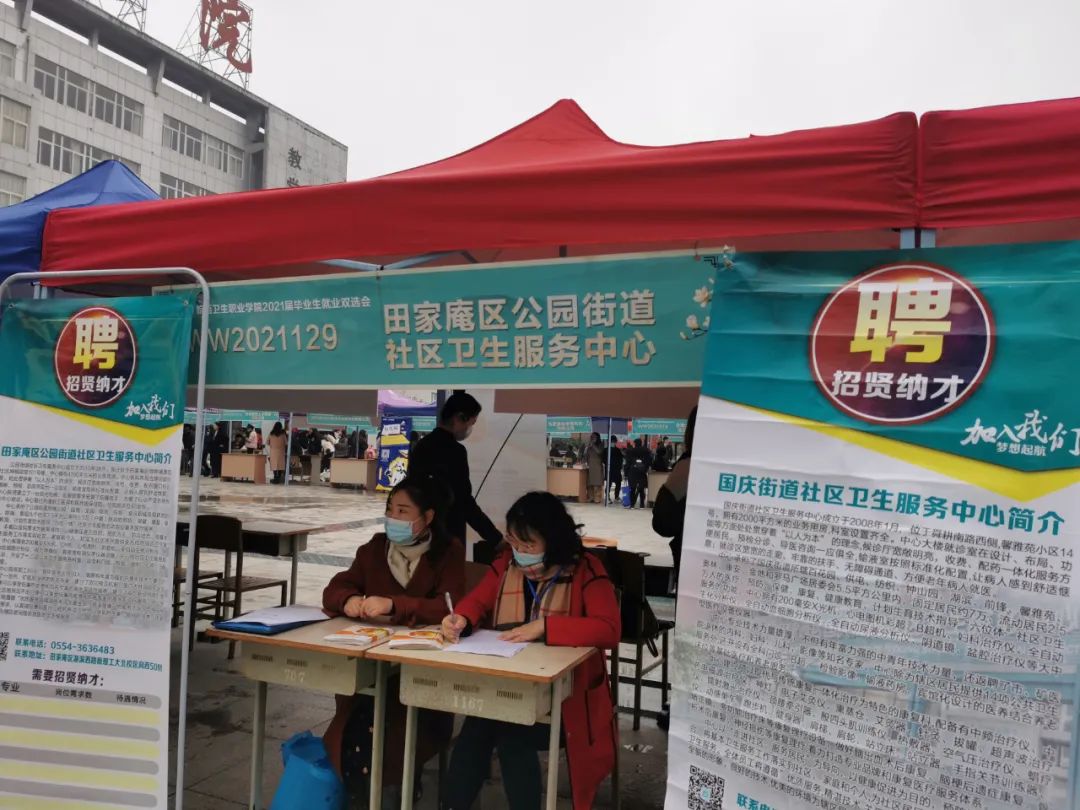 3月20日 皖西卫生学院在学校安排的展位挂上了淮南济民医院醒目的标语,以及摆放好我们提前准备的宣传物料。