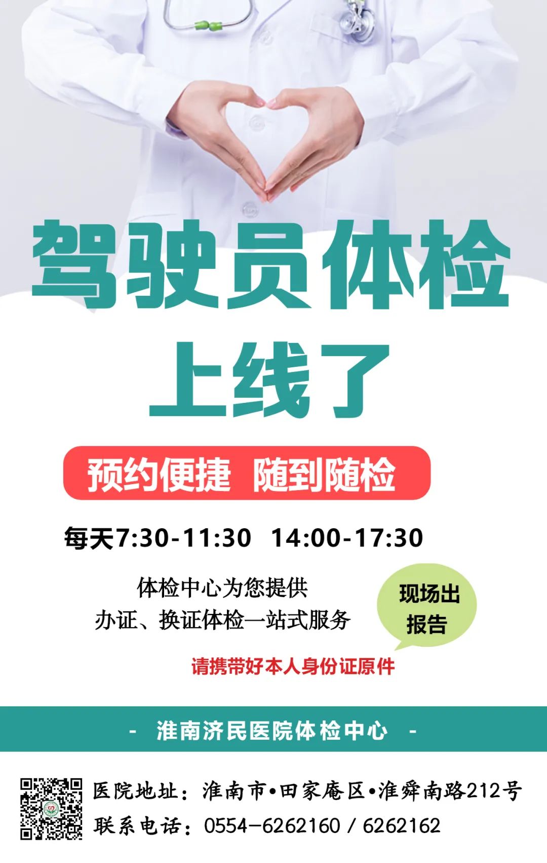 自己的驾照到期去哪里体检比较方便呢?近日淮南济民医院驾驶员办证、换证体检正式开诊就在门诊部6楼的体检中心这里体检环境温馨优雅拥有完善的基础配套设施依托强大的医疗技术团队和先进设备为受检者提供一站式服务