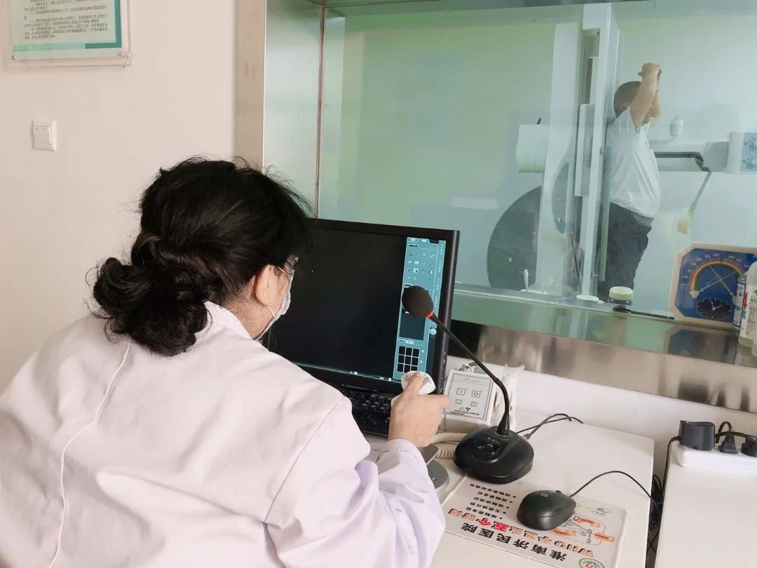 医生通过数字化X射线摄影机对胸部透视,实时观察肺部、心脏、胸膜、胸壁、支气管等病变情况。——淮南济民医院体检中心