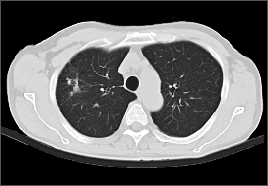 胸部CT扫描经常可以发现肺内的小结节灶,肺内间质、实质性病变均可以得到较好的显示。采用增强扫描以明确纵隔和肺门有无肿块或淋巴结增大、支气管有无狭窄或阻塞,对原发和转移性纵隔肿瘤、淋巴结结核、中心型肺癌等疾病的诊断,均有很大价值。