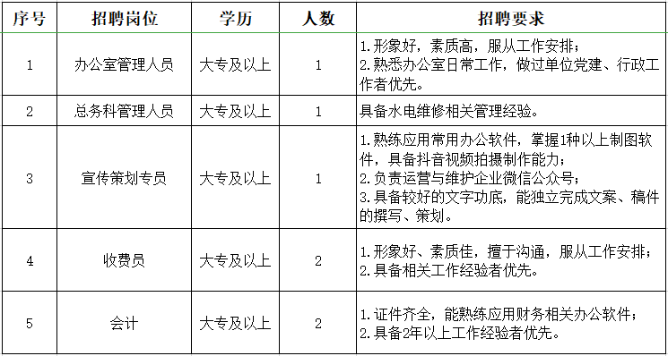 行政类招聘岗位及要求