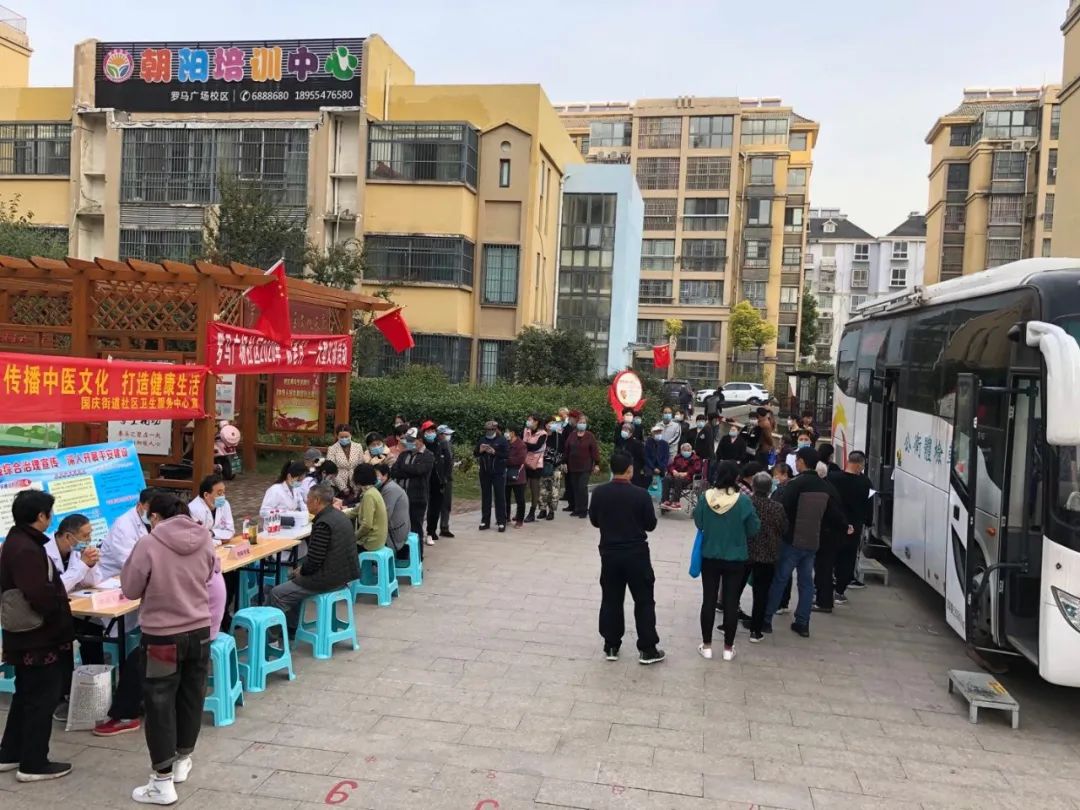 罗马广场小区健康义诊视频一大早淮南济民医院和国庆街道社区卫生服务中心医疗团队深入到罗马广场小区体检车开到社区家门口健康义诊服务走进居民测量血压、血糖进行心电超声、胸透等健康检查