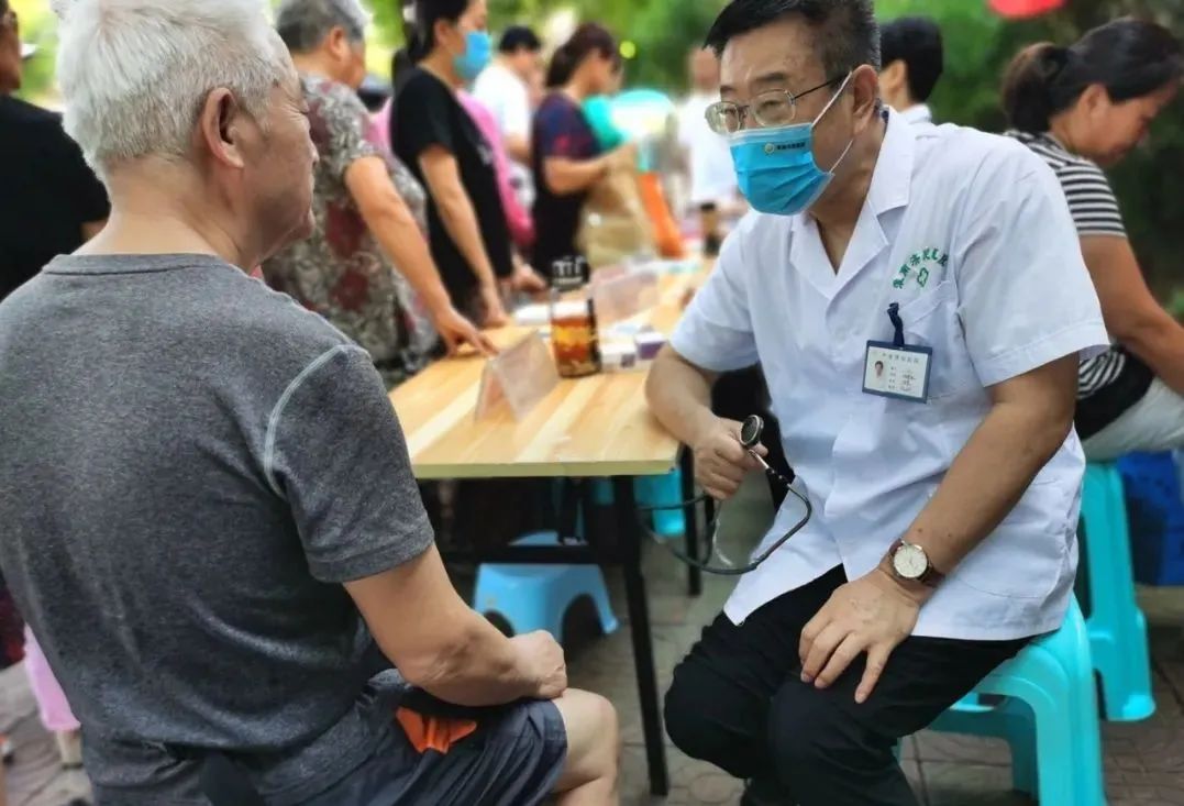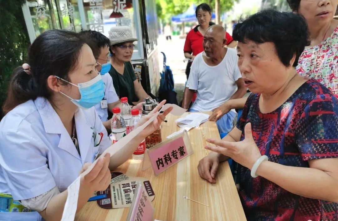 一大早,医疗服务人员穿梭在体育广场晨练的人群中,不是卖吃的,也不是卖玩的,而是给群众送去健康知识、传递健康生活理念。