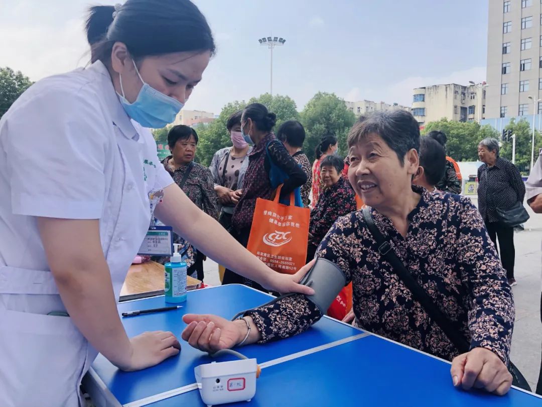 群众们一个个前来咨询健康问题,医护人员耐心的询问病史、了解病情,并为其测量血压、进行心电超声、胸透等健康检查。