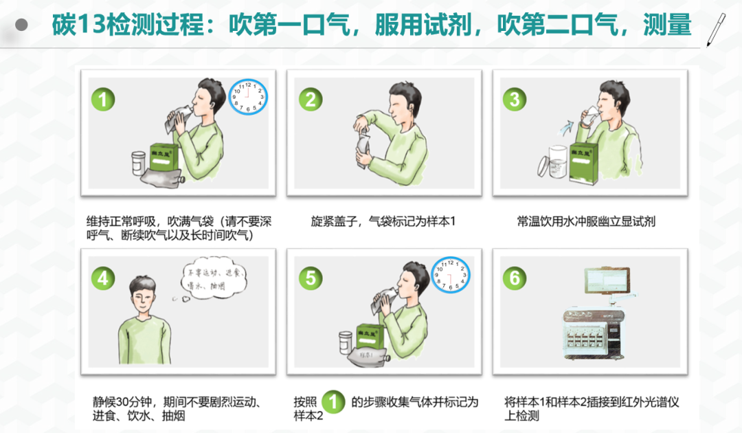 淮南济民医院检验科孙红霞主任介绍:“我们现在采用的碳13尿素呼气试验是最新、快速、无痛、无辐射的幽门螺杆菌检测技术,只需要轻松呼气,测定呼气成分,便能高效安全检测出是否有幽门螺杆菌感染。”