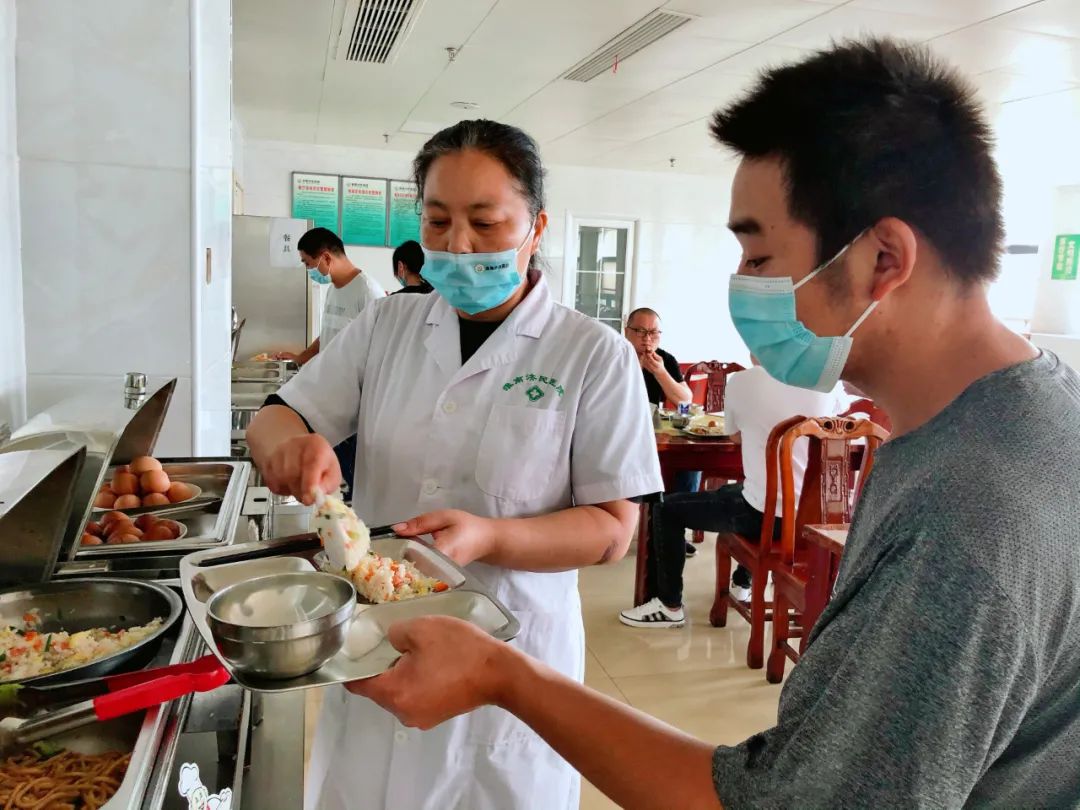 为满足住院患者及家属的全方位需求,每天中午,食堂服务人员都会将提前预定的饭菜用封闭式餐车运送到病房,亲自送到患者及家属手里,既保障了食品安全卫生,又给住院患者及家属就餐提供了便利。
